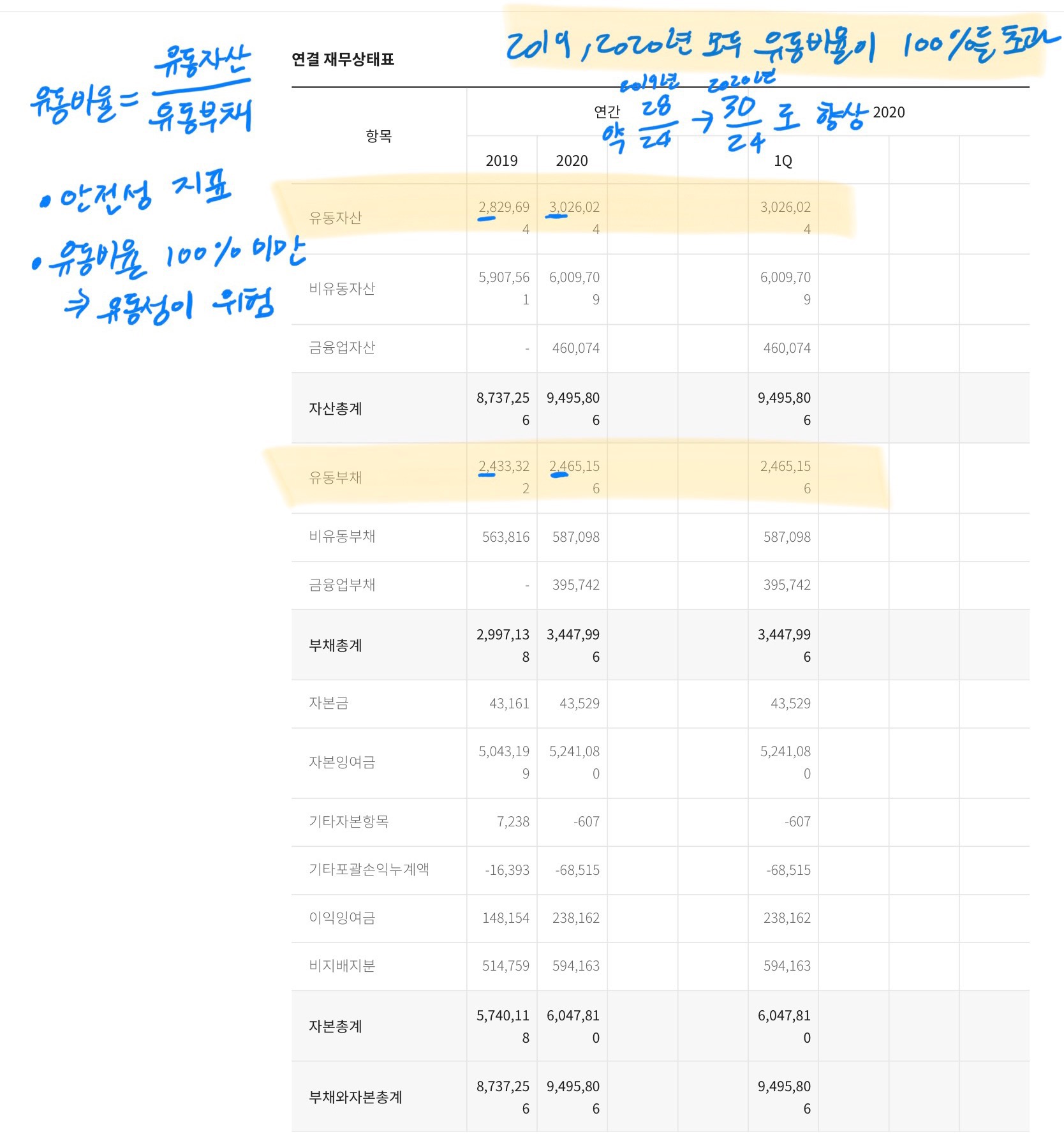 재무재표의 몇가지 수치를 통해 간단히 확인해보았습니다.