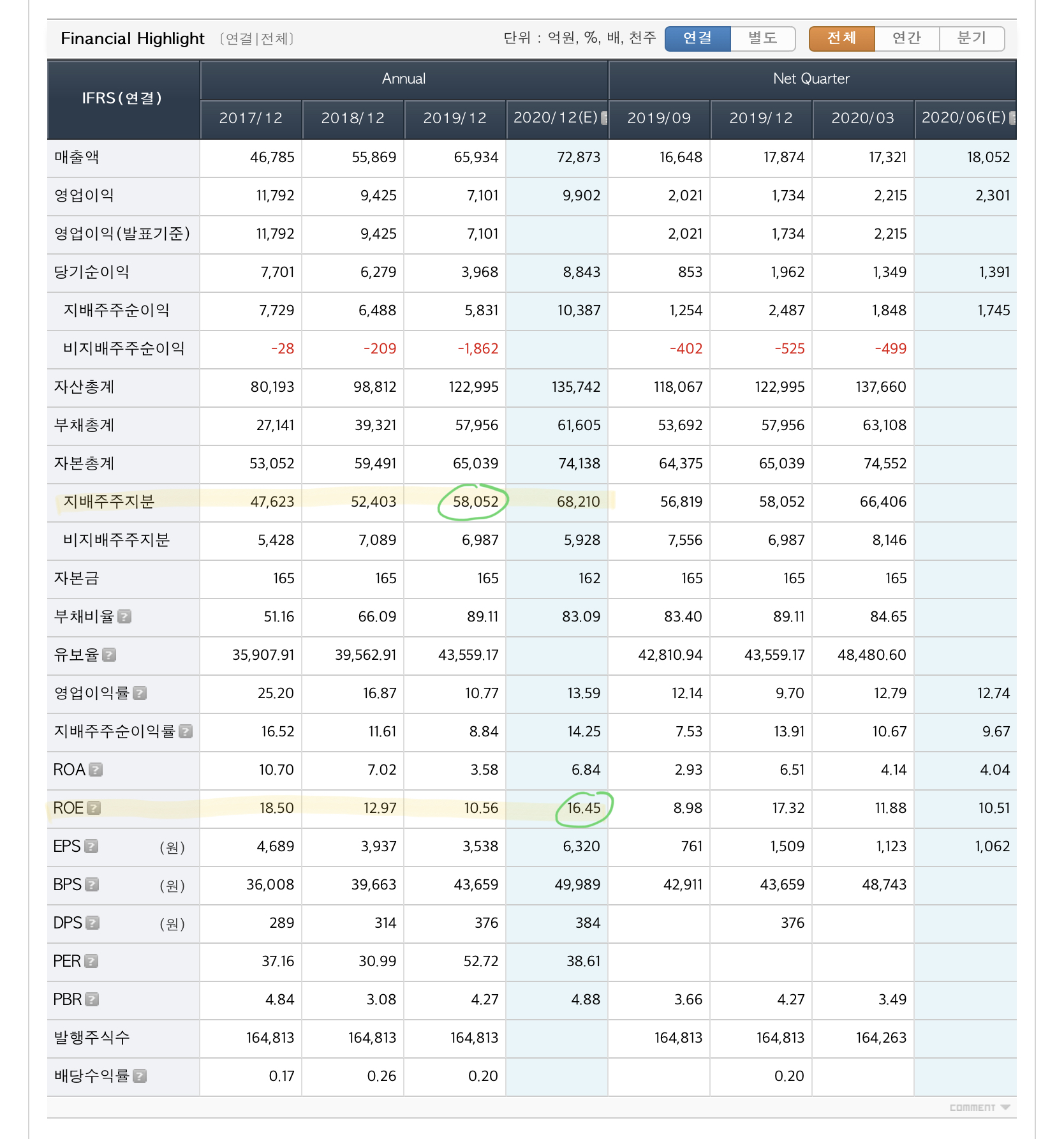2020년도 네이버 예상 ROE 16.45% (카카오 5.95%)