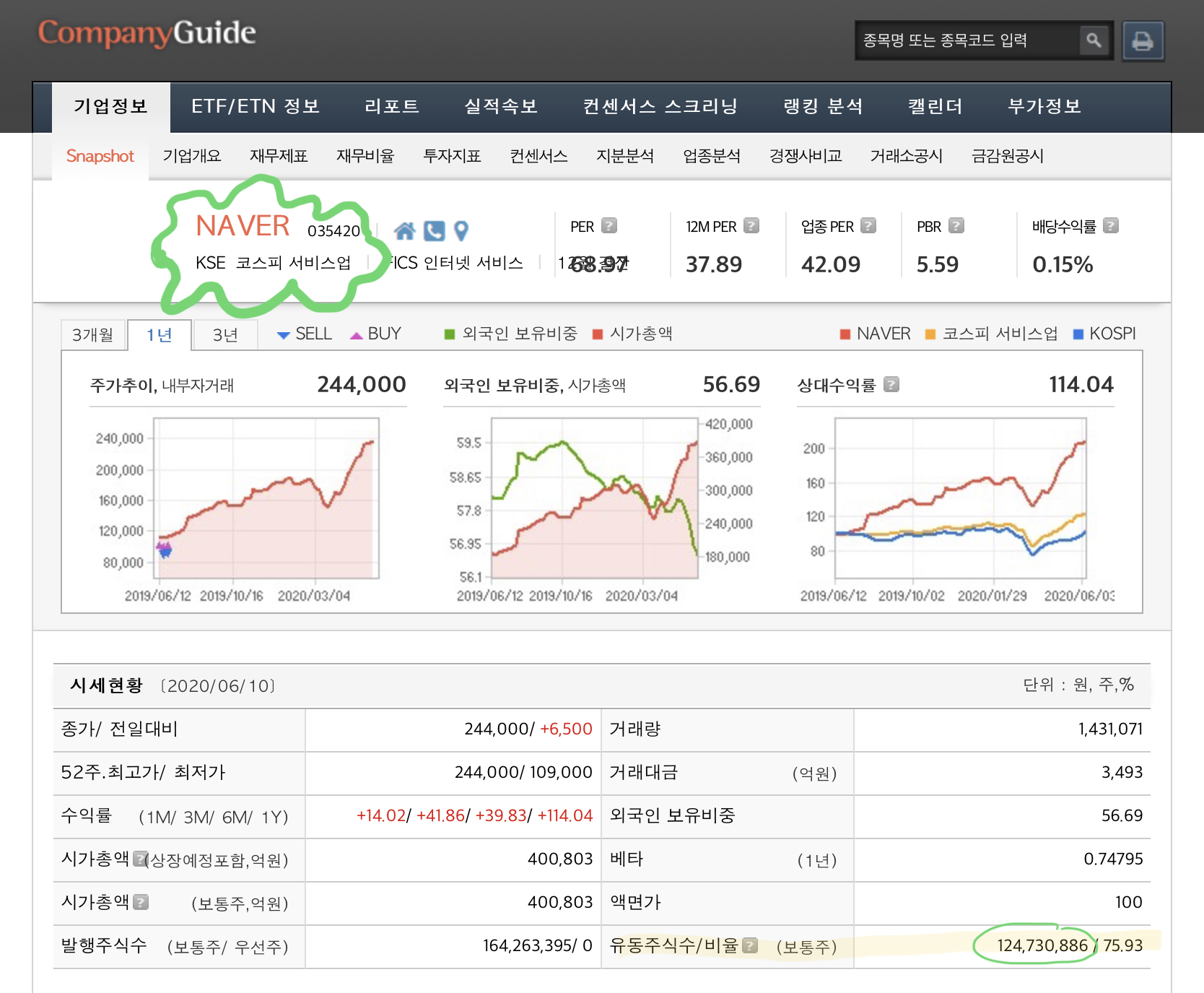 네이버의 PER 54.33(배)으로 일반적으로 봤을 때는 굉장히 고평가된 수치입니다.