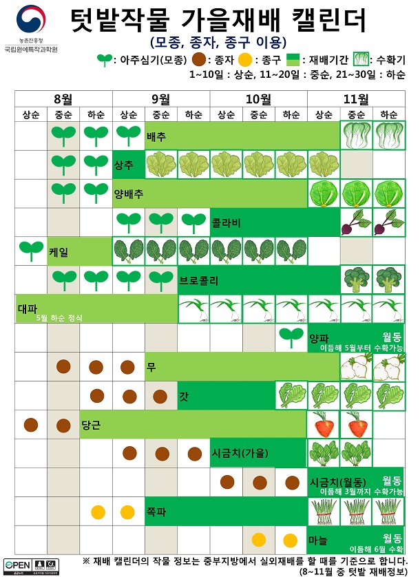 가을 작물은 주로 8월에서 10월 사이에 심는다.