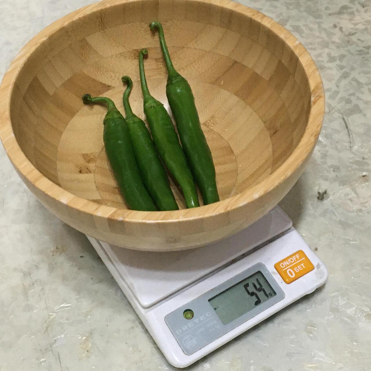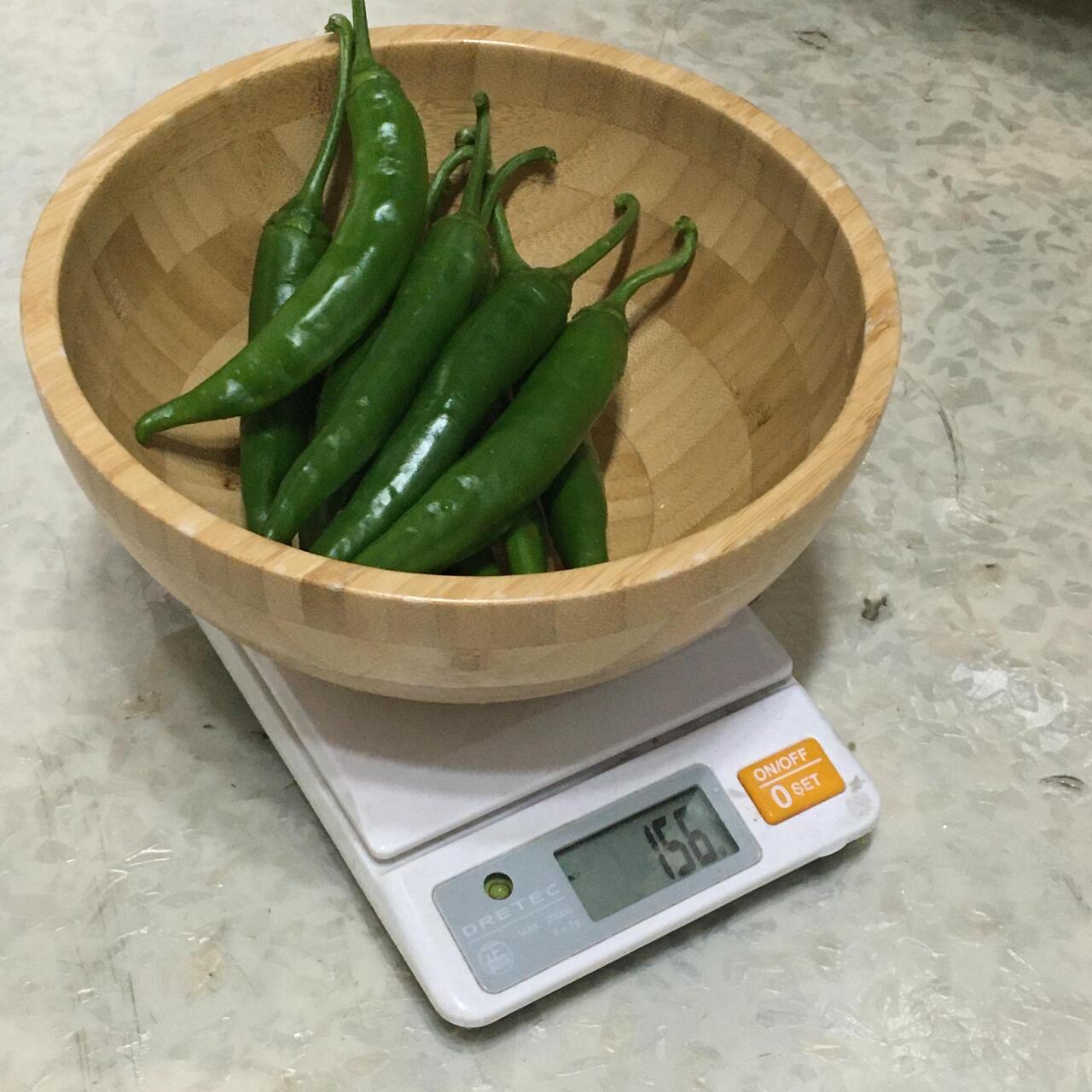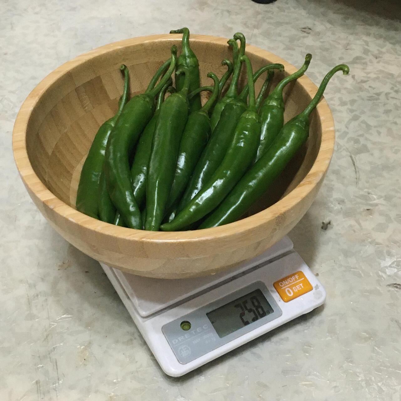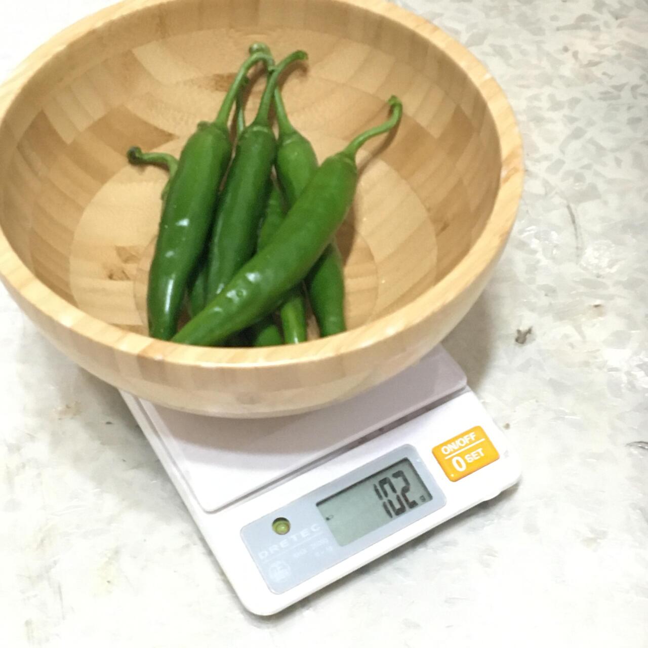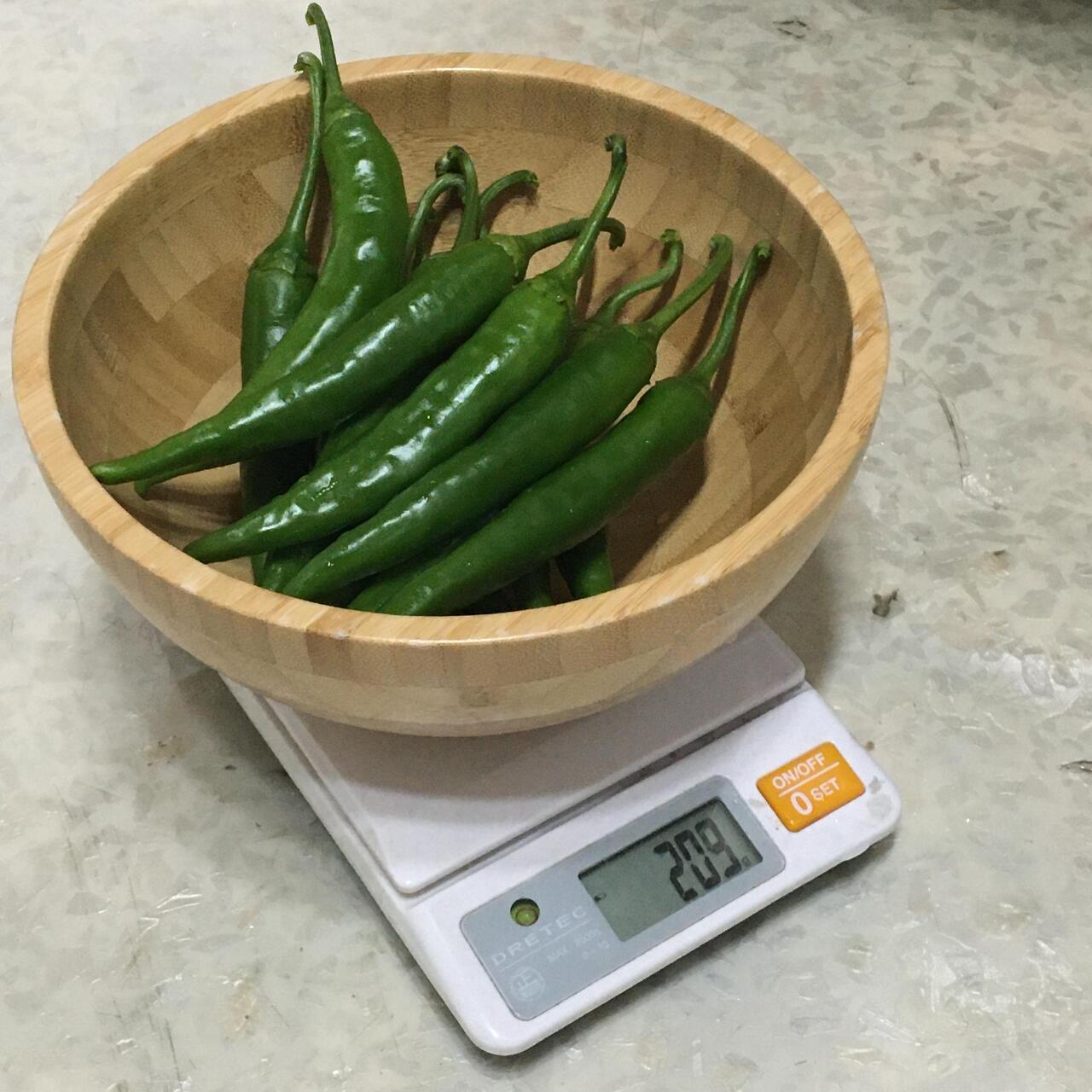 가장 수확량이 좋을때 쯤에 고추나무 7그루에서 한 주에 260g 정도 수확을 했다.