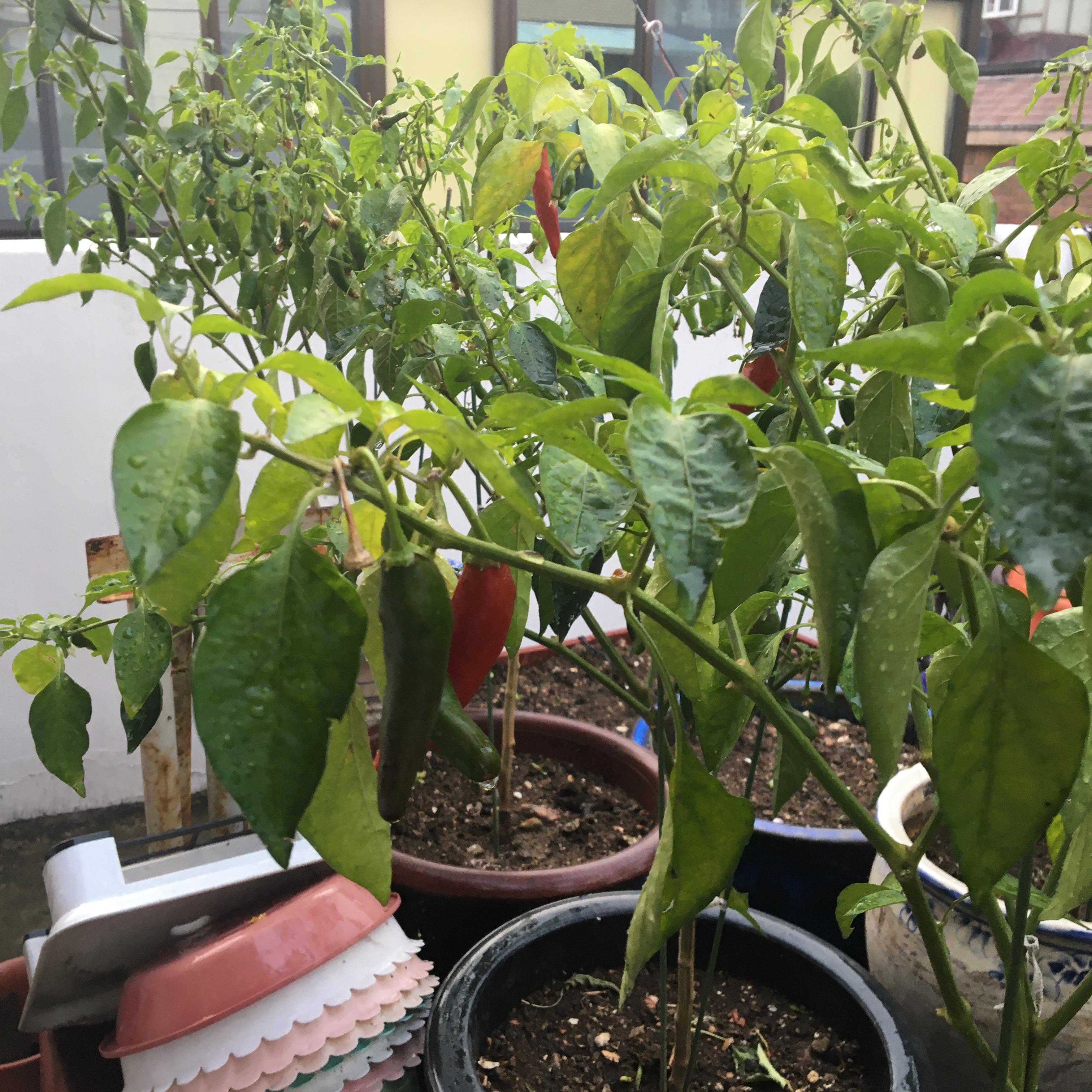 사실 꽃이 더이상 안 피게 되면서 고추 열매를 따지 않고 두게되어 빨갛게 익어가는 것 같다.