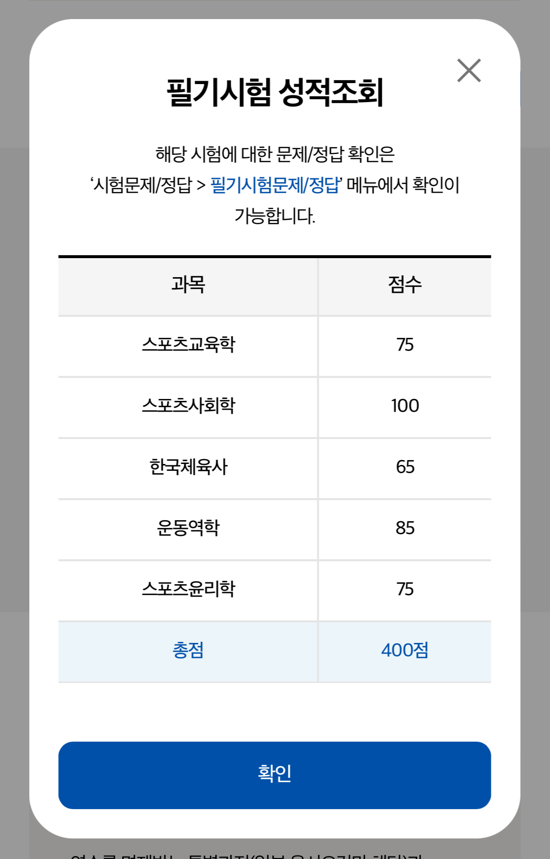 (국민체육공단 홈페이지 > 필기시험 문제 정답 페이지에 올라옴, 공지사항에 올라오는 것 아님)