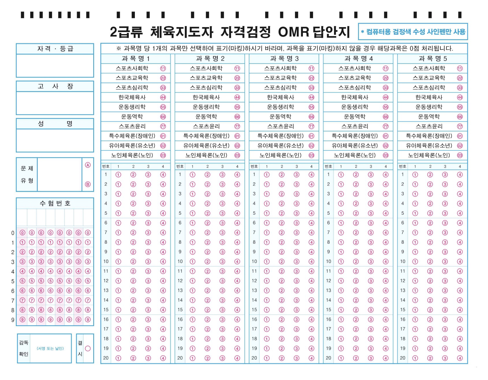 omr카드 프린트해서 연습해보세요!