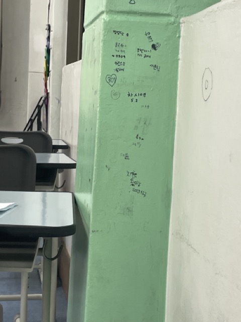 운동장에도 잠깐 앉아보시고, 주변에 중학생 애기들이 한 낙서도 읽어보면 재밌어요.