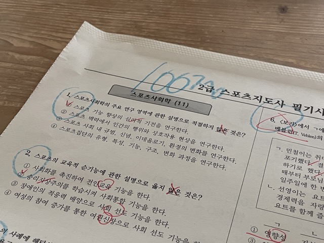 저는 오늘 아침 2025년 생활체육지도자 2급 필기시험을 보고왔습니다!
