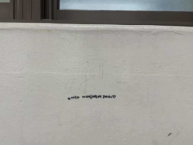 운동장에도 잠깐 앉아보시고, 주변에 중학생 애기들이 한 낙서도 읽어보면 재밌어요.