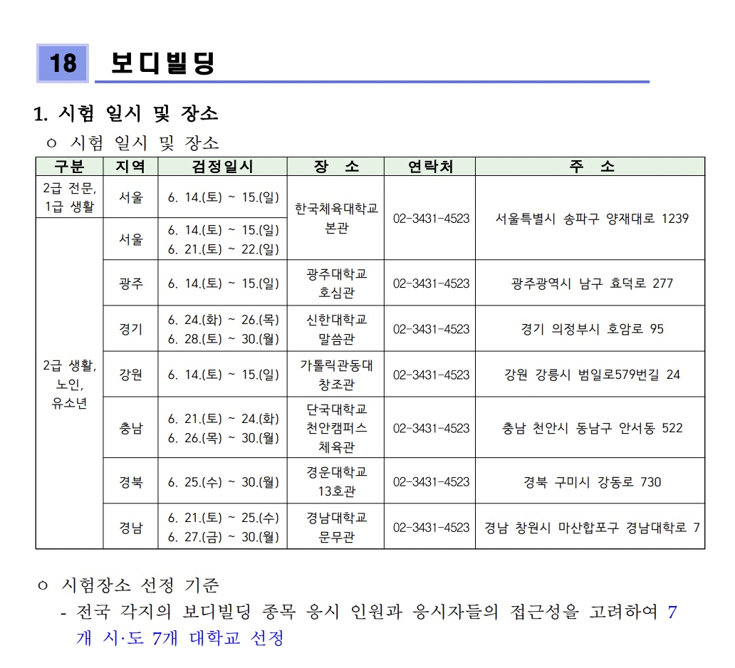 2025 보디빌딩 실기는 6/14~15과 6/21~22일, 총 4일간 진행됩니다.