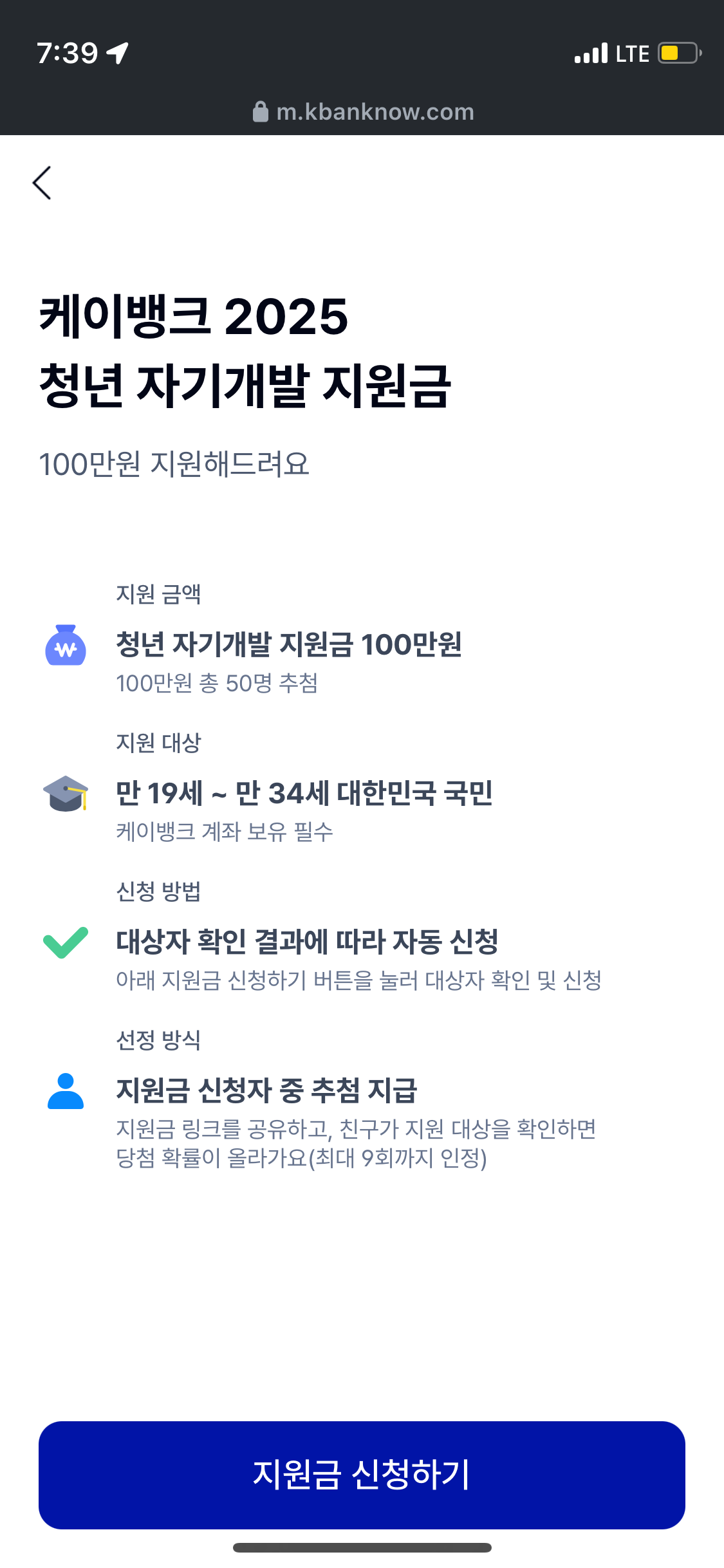 청년 자기개발 지원금을 주는 이벤트를 하고있어요!